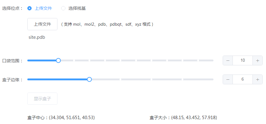 稍等片刻,即返回盒子中心、盒子大小数据和图形。