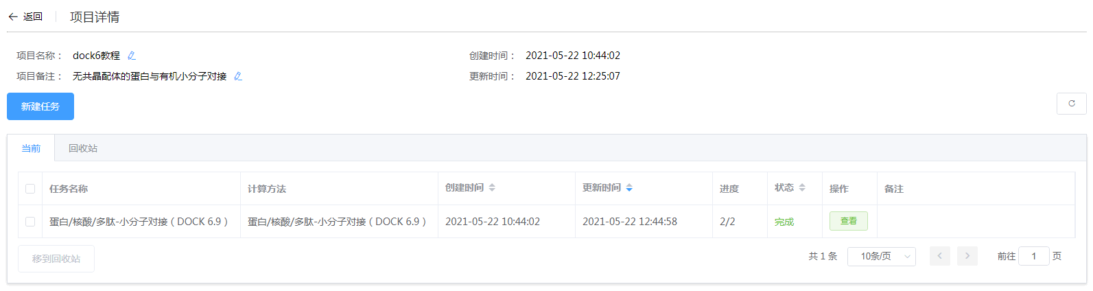 打开殷赋云平台【蛋白/核酸/多肽-小分子对接(DOCK 6.9)】大方案,创建任务,进入提交任务页面;