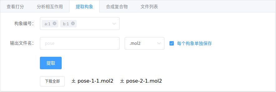 若有需要,提取对接构象,合成复合物结构。