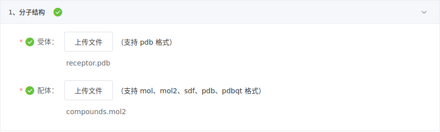 上传受体和配体结构文件;