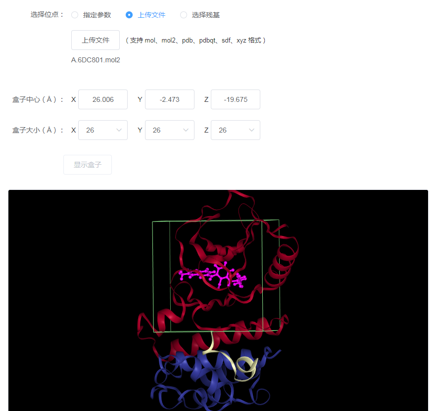 上传共晶配体文件,点击【显示盒子】;